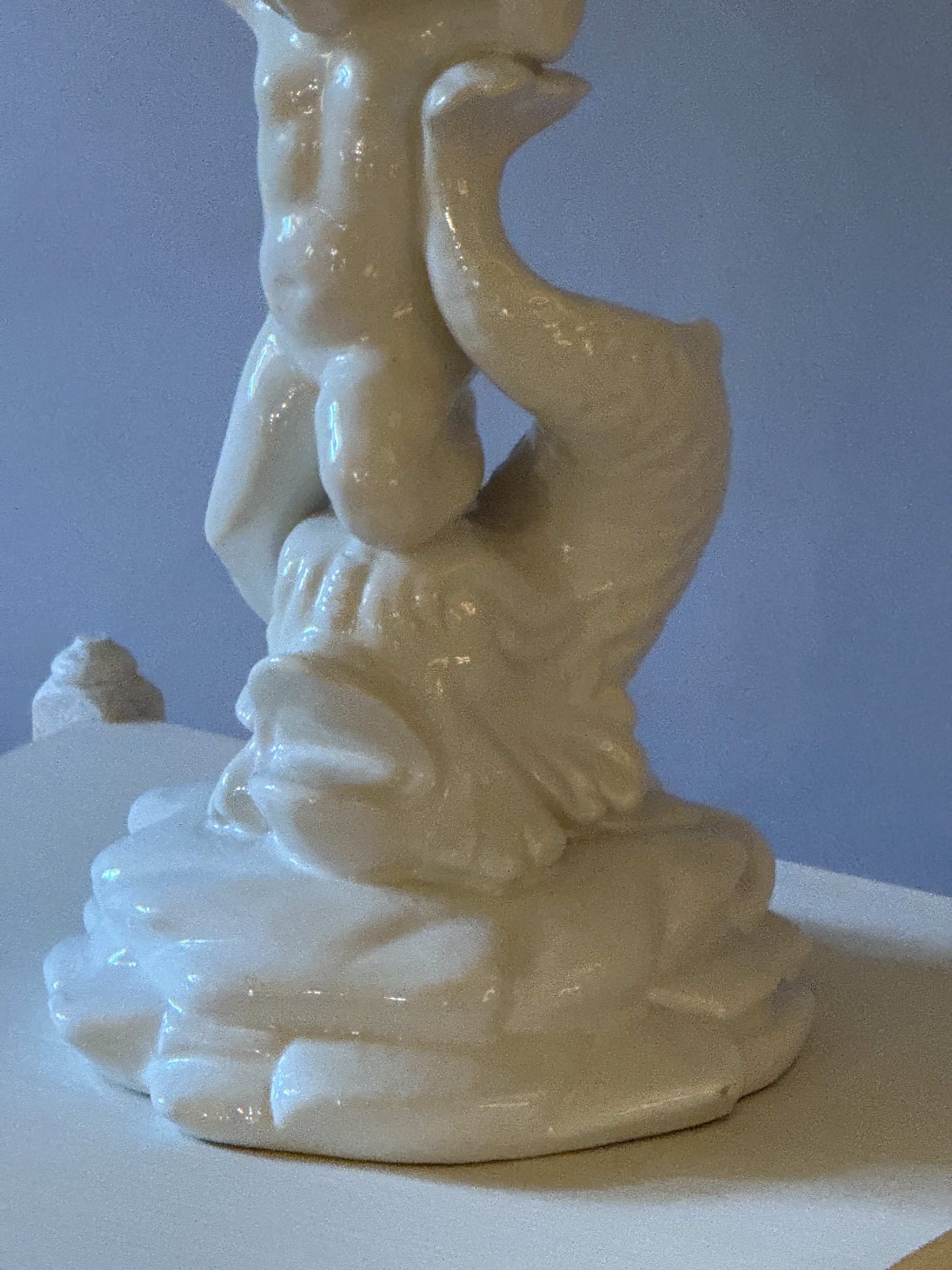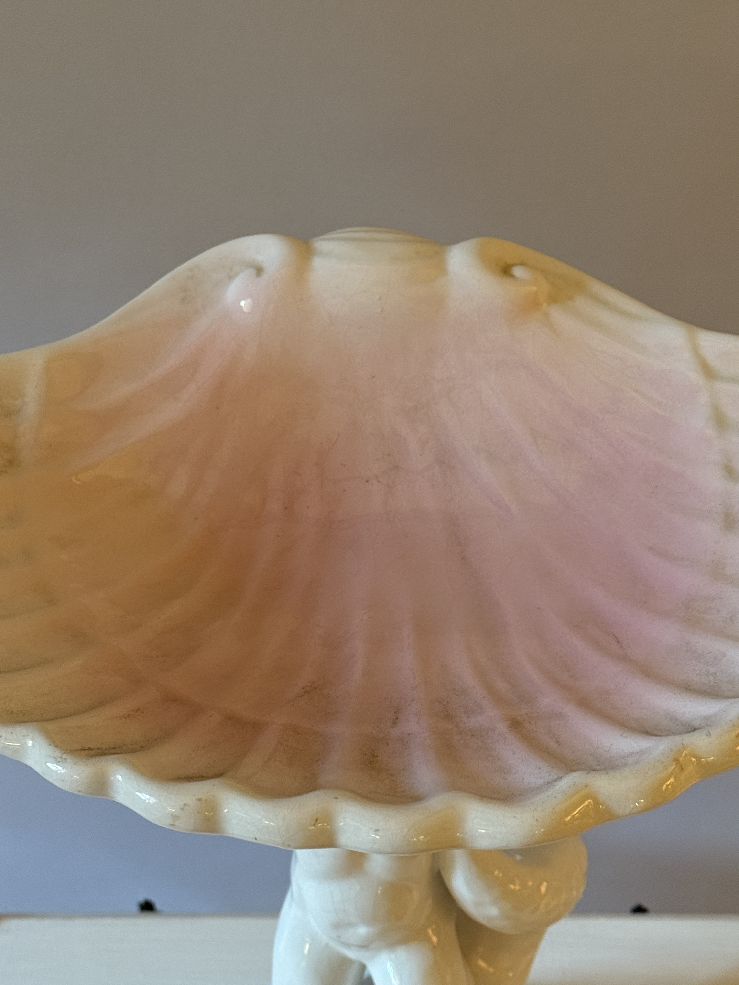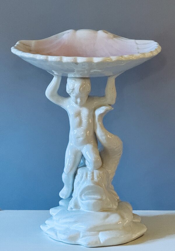 A Very Large Decorative Italian Comport, Ideal for Piles of Soap or Shells Beside a Bath. The Scallop Shell with Pink Interior, 20th Century