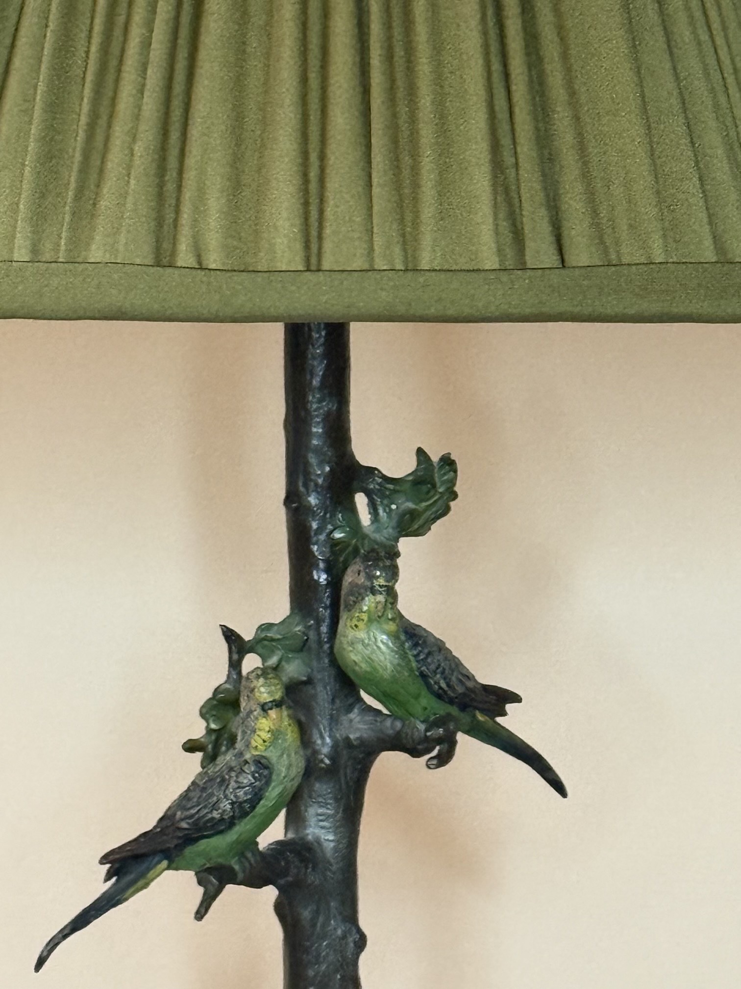 A Pair of Cold Painted Bronze Bird Lamps