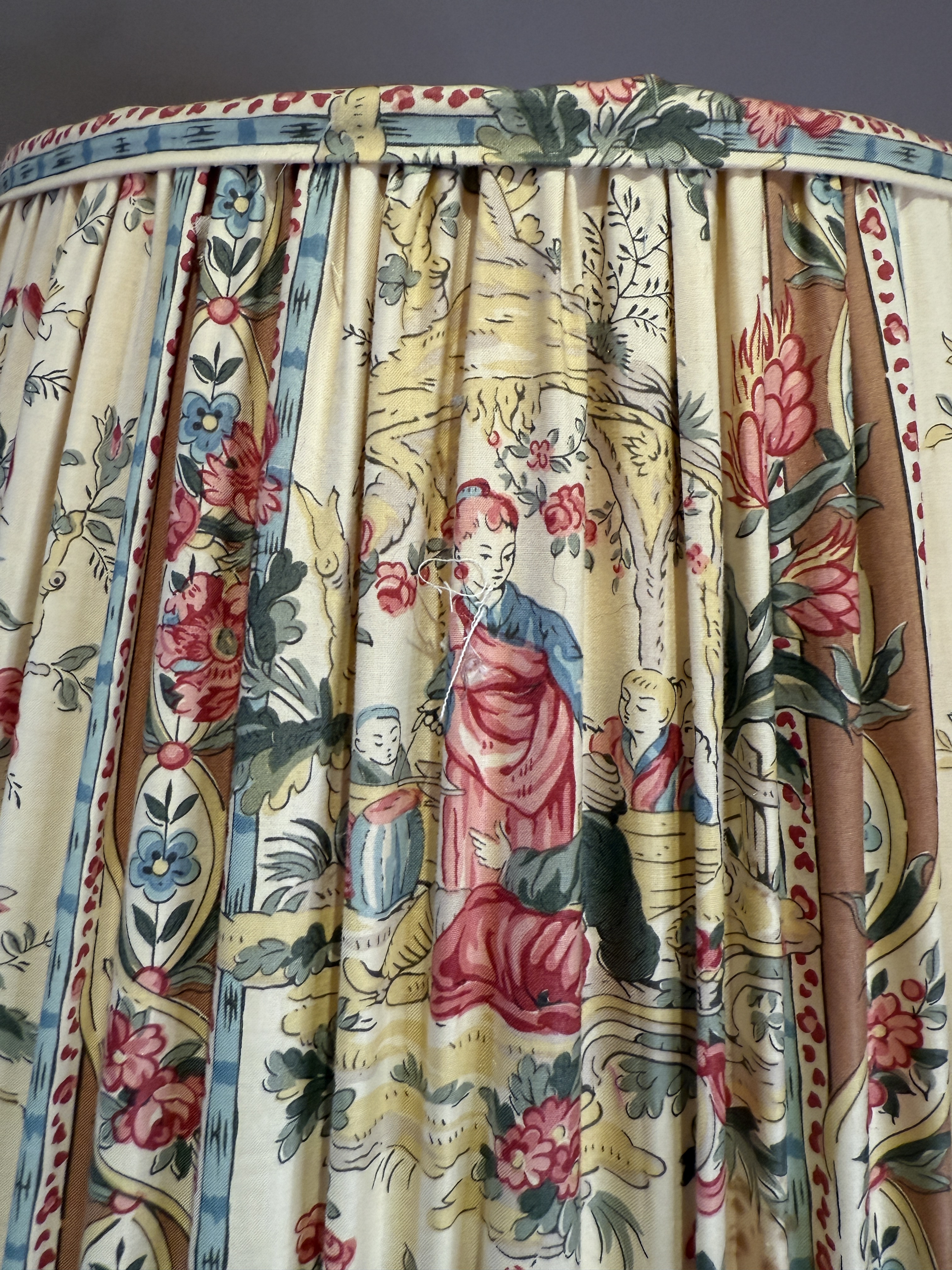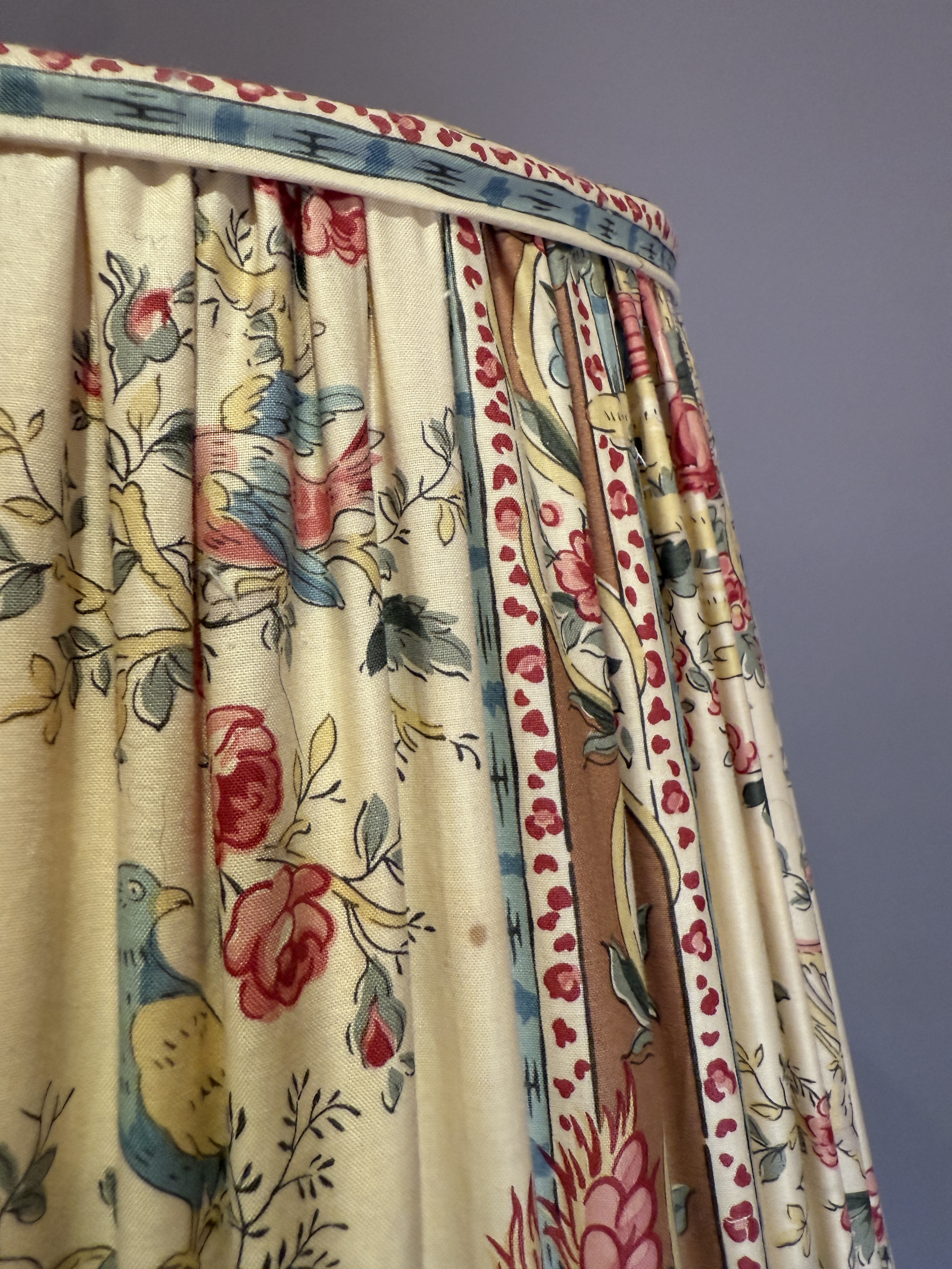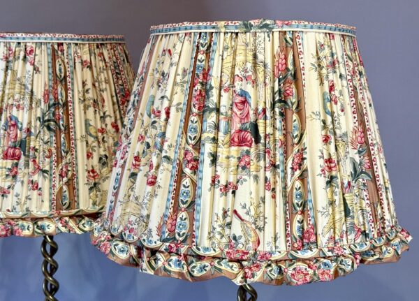 A Wonderful Pair of Large Vintage Chintz Lampshades with Frill.