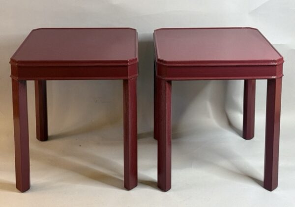 A Pair of Very Useful Painted Red Occasional Tables, Late 20th Century