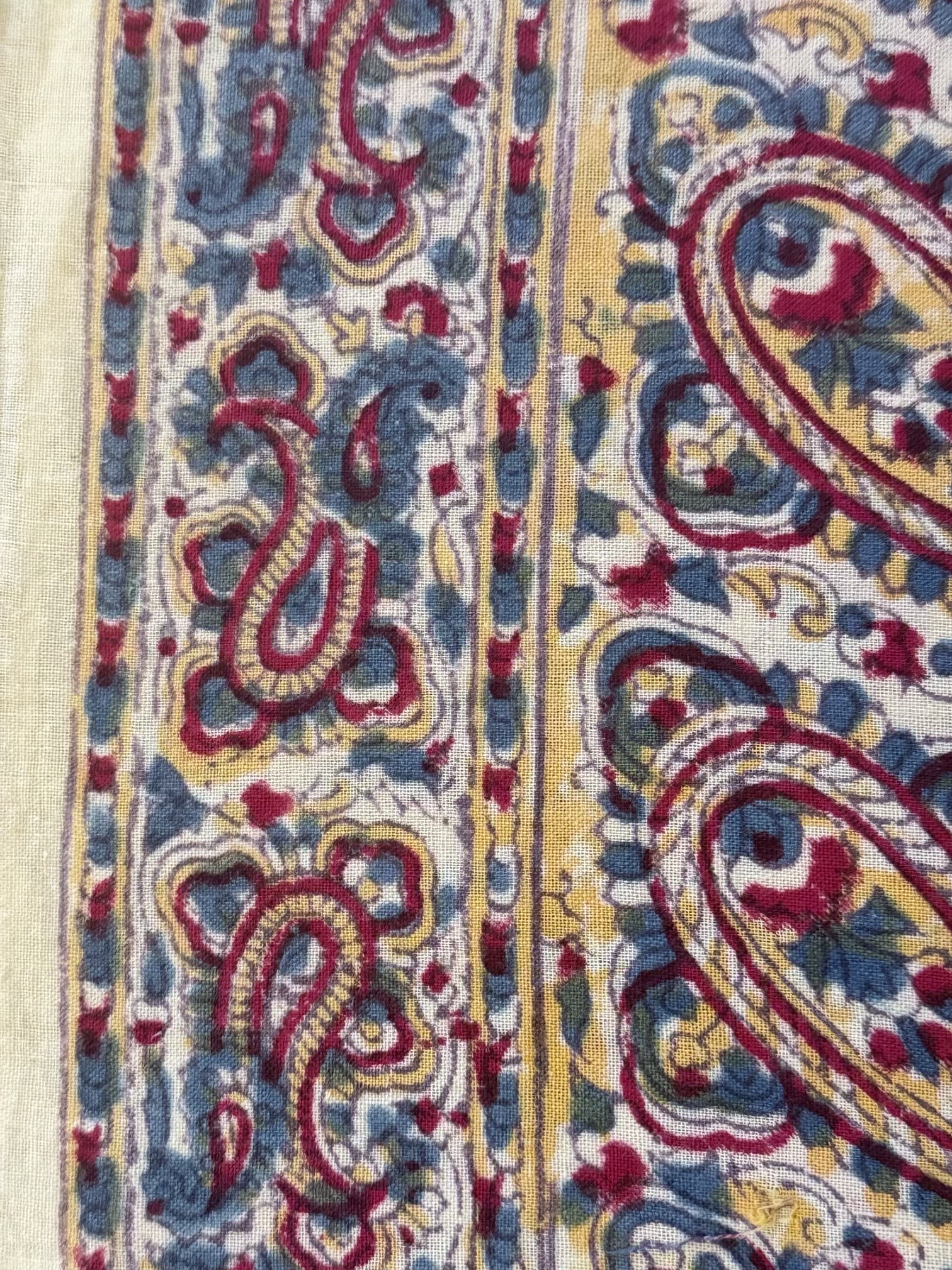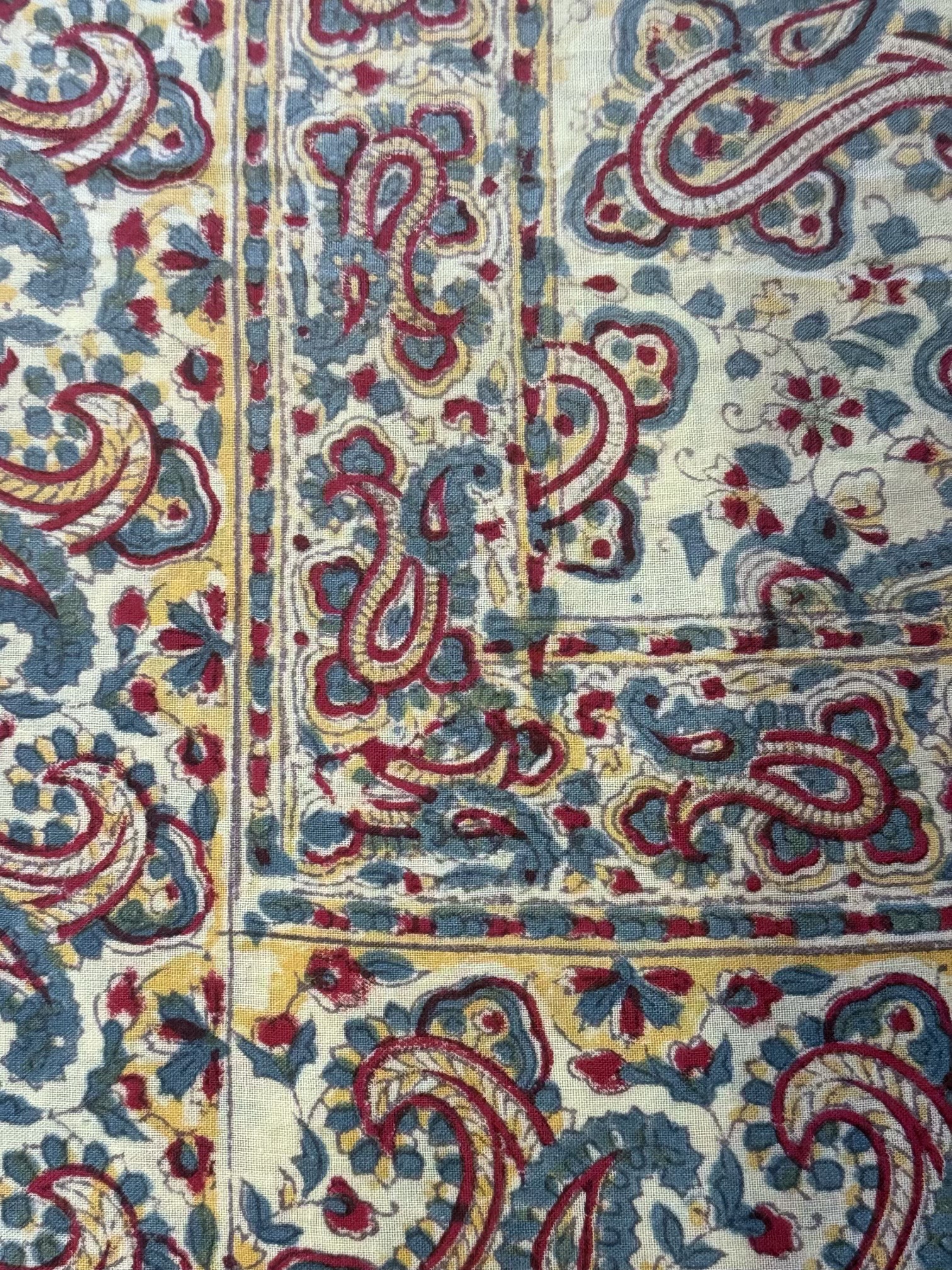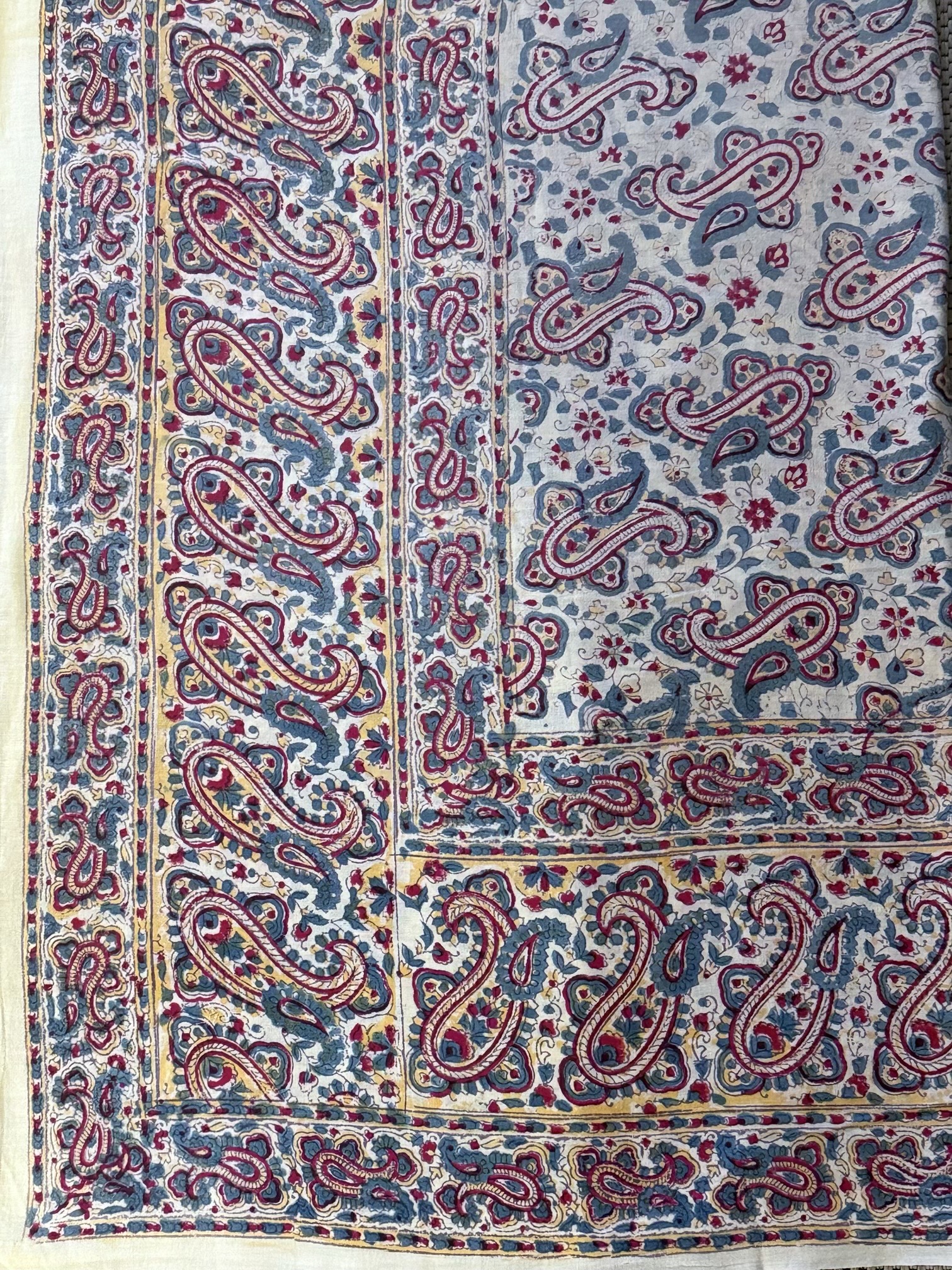 A Lovely Vintage Indian Block Printed Tablecloth, Mid 20th Century, decorated with boteh