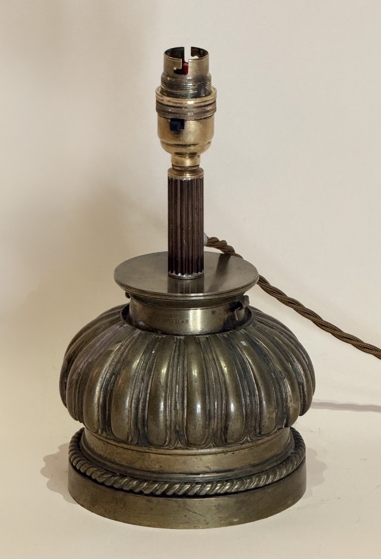 A Small Heavy Brass Indian Hookah Base Made into a Lamp, Late 19th Century