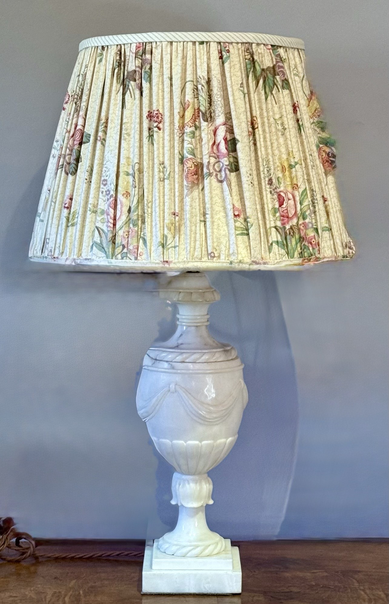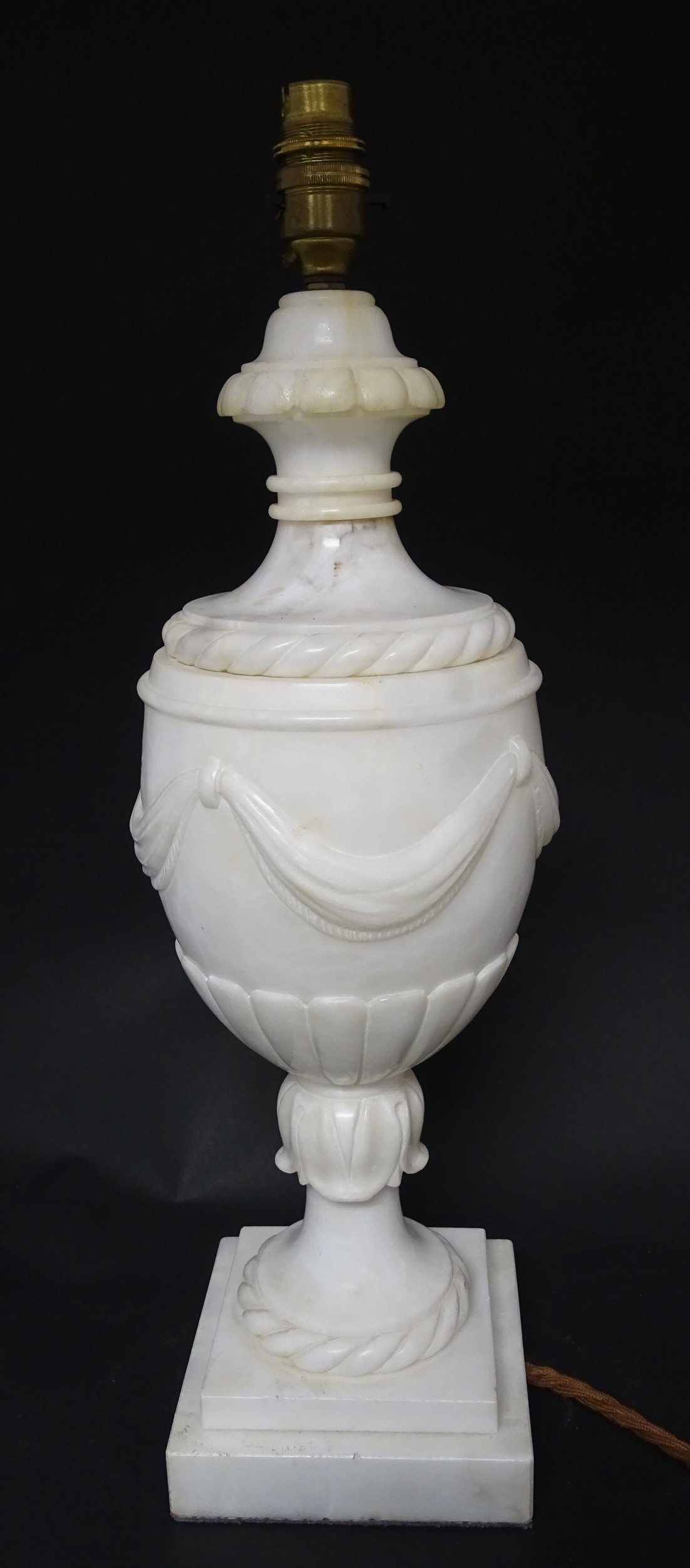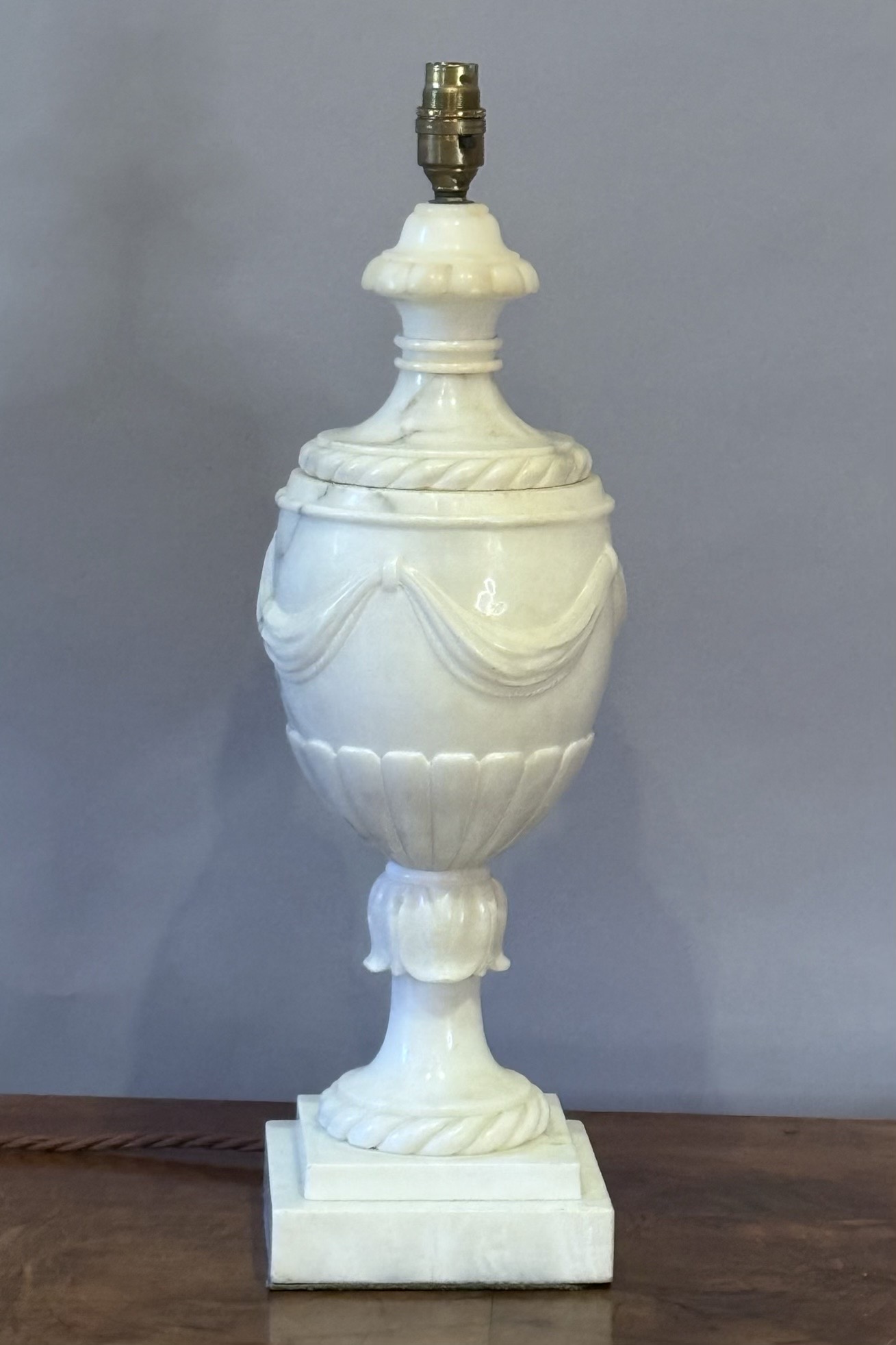 A Substantial Carved Marble Lamp in Urn form decorated with Swags, English or Italian, Early 20th Century