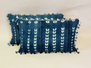 A Pair of Lovely African Mud Cloth Cushions With Later Colefax Tassel Trim to Outside and Plain Linen Backing