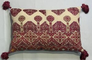 An Unusual Swat Valley Partially Embroidered Cushion, Pakistan, Early 20th C with Fermoie Backing and Cut Ruche Trim from Turnell and Gigon
