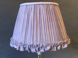 A Lovely Pair of Lilac Gathered Silk Lampshades 16″, Duplex Fitting