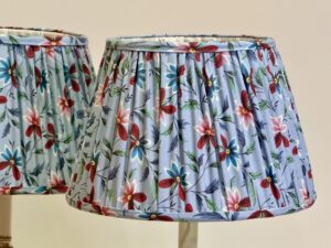 A Pair of Lovely Gathered Lampshades Made From Decors Barbares Fabric.