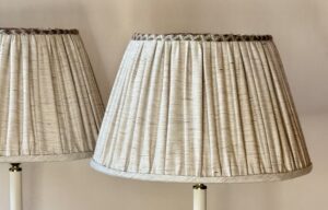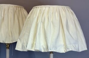 A Lovely Pair of Large Cream Silk Loose Skirted Softly Gathered Lampshades with Cotton Voile Linings, Duplex Fittings