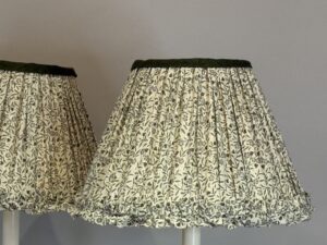 A Pair of Dark Olive Green Cotton Lampshades 14″