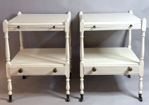 A Pair of Very Attractive Double Shelf Painted Bedside Tables with Drawers and Pull Out Leaf, 20th Century