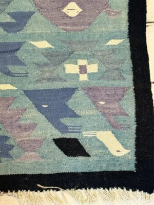 A Pretty Scandinavian Kelim Rug in Blues, Turquoise and Lilac, Late 20th Century