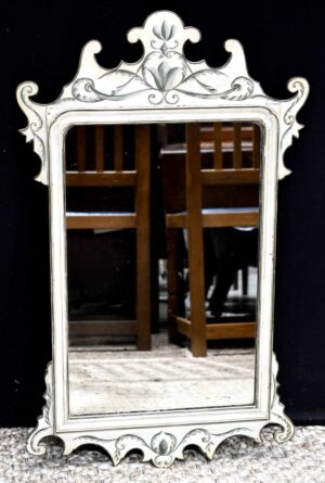 A Pretty English Painted Fretwork Mahogany Mirror, 19th Century, Painted Mid 20th Century