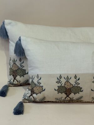 A Pair of Unusual Block Printed Cushions