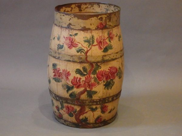 A Lovely Dutch Painted Barrel, Early 18th Century, in original paint, ideal for waste paper bin or stick stand