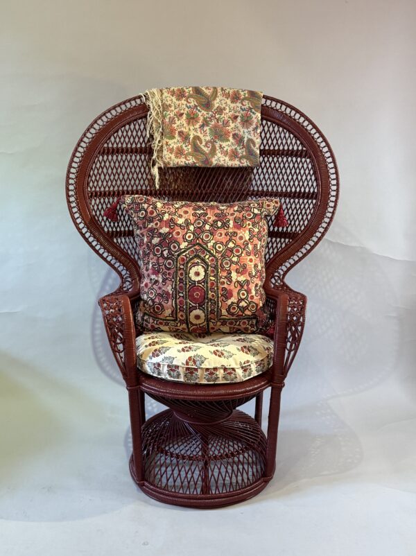 A Wonderful Dark Dark Red Gloss Painted Peacock Chair, Mid 20th Century