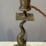 Pair English Brass Dolphin Candlestick Lamps