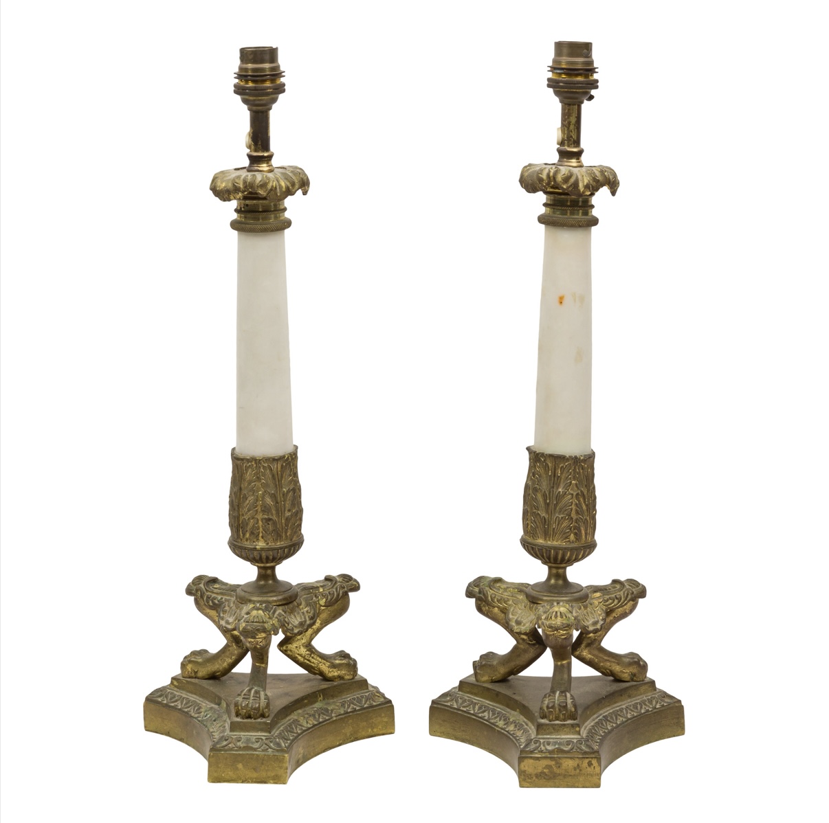 A Very Attractive Pair of Brass and Onyx or Marble Lamps, Late 19th Century