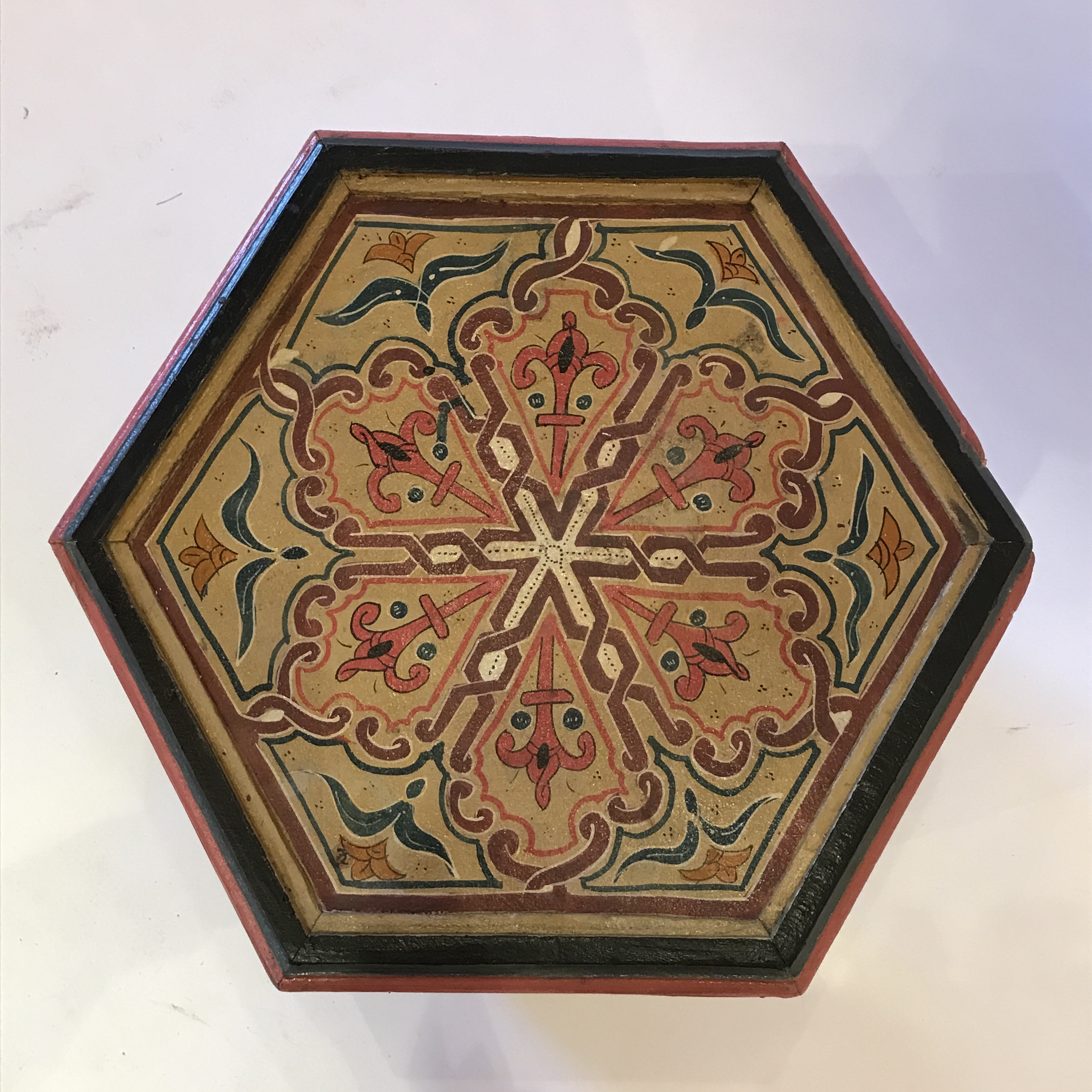 A Pretty Small Painted Octagonal Moroccan Occasional Table, with pierced and painted Mashrabiya Sides
